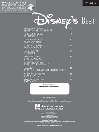 Disney's Best, Easy Piano Play-Along Vol. 15