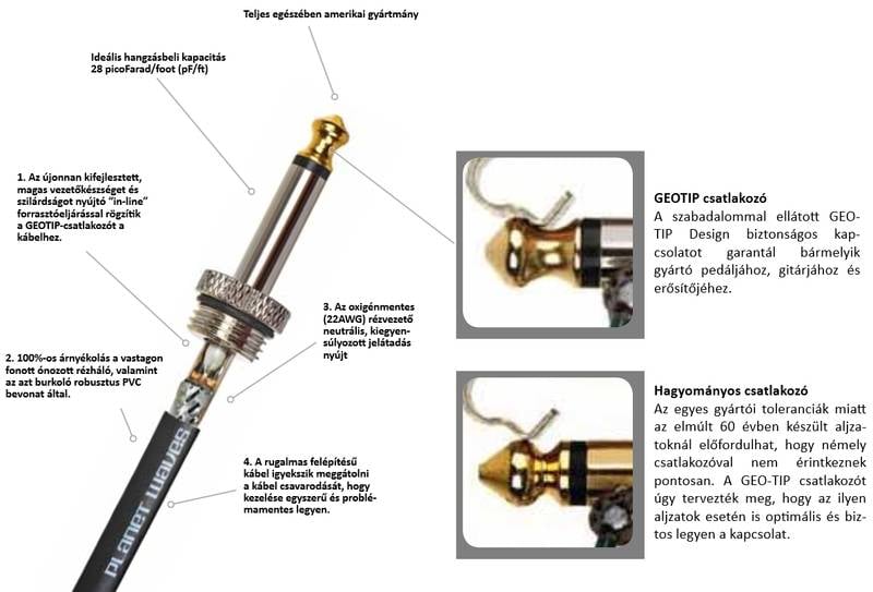 D'Addario's patented Geo-Tip™: Gives you the most secure connection possible. Ordinary cables tips don't allow for varying jack tolerances. But the D'Addario-designed patented Geo-Tip™ works with any jack to give you the most secure, trustworthy connection possible.