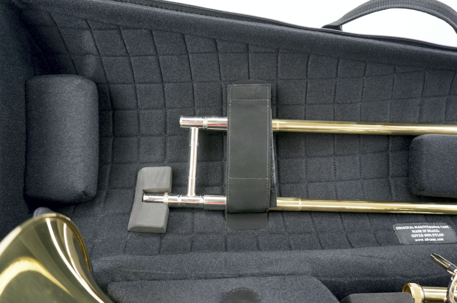 It also fits trombones with hand support and trombones with or without rotary valves.