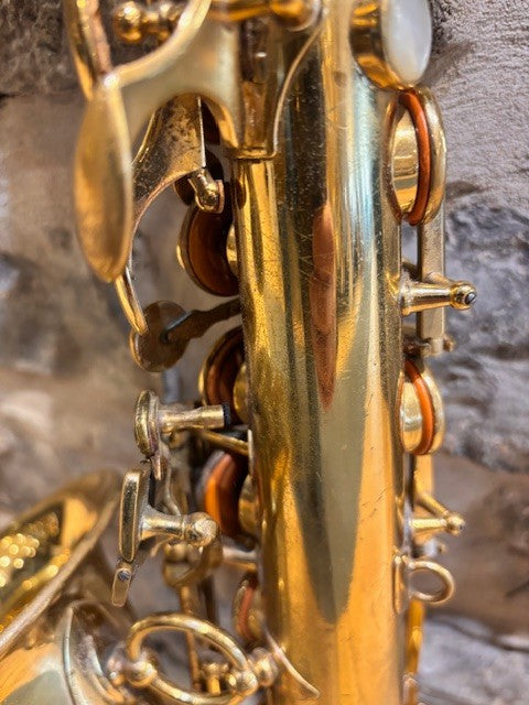 A classic vintage Selmer alto saxophone, the Super Balanced Action is highly regarded for its warm, rich tone and excellent projection. This instrument offers comfortable keywork and the legendary Selmer craftsmanship favored by professional players.
