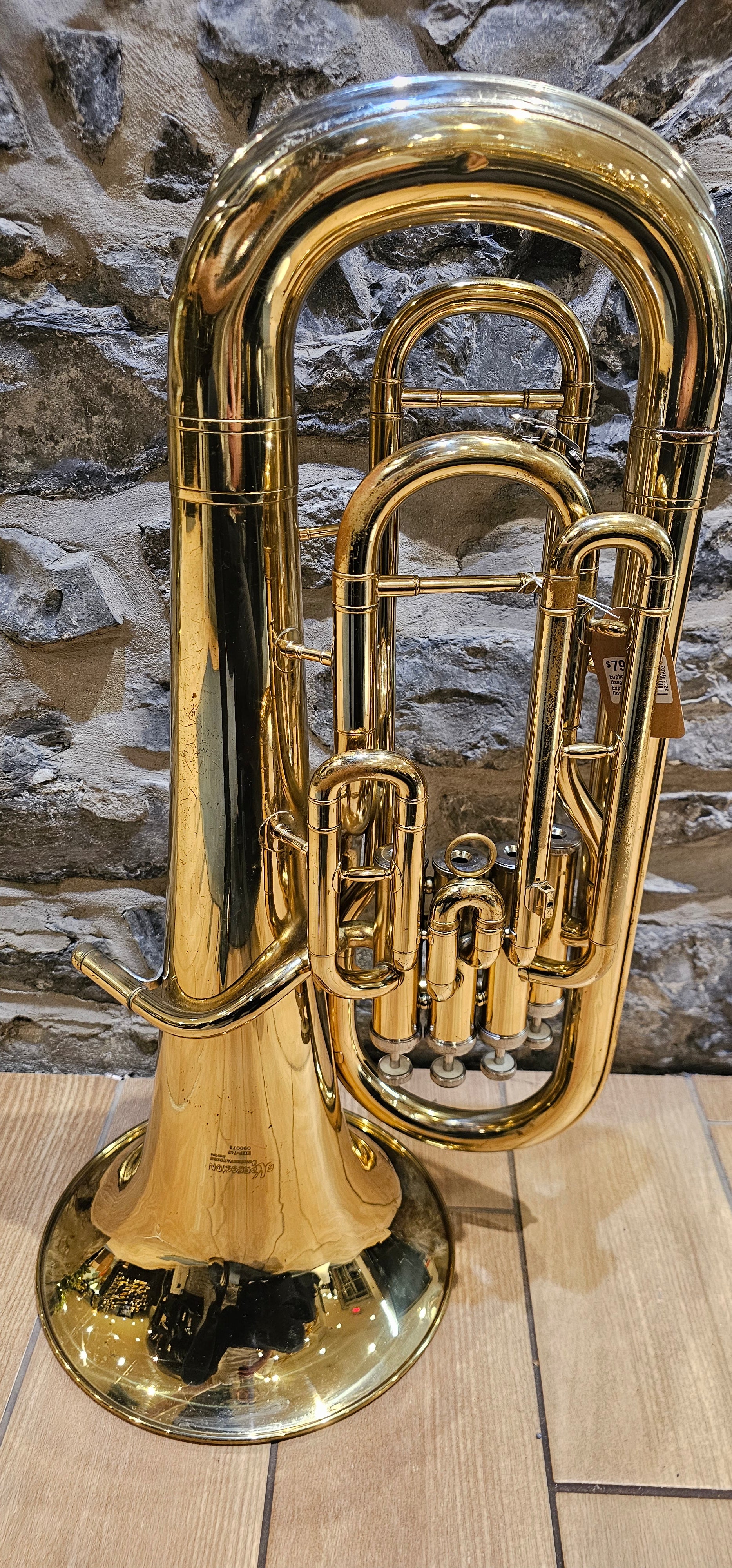 This intermediate euphonium features a Large bore, 4 valves, a Yellow Brass bell and leadpipe as well as a nickel bow guard. This model offers a large and deep sound ideal for orchestra or concert bands. It comes with a hard case as well as a large bore mouthpiece and one year guarantee on the adjustments.