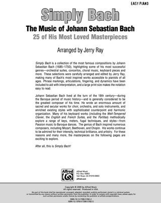 Simply Bach (The Music of Johann Sebastian Bach: 25 of His Most Loved Masterpieces) - Piano