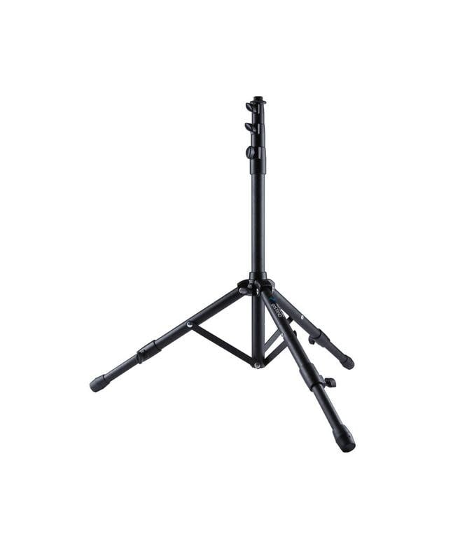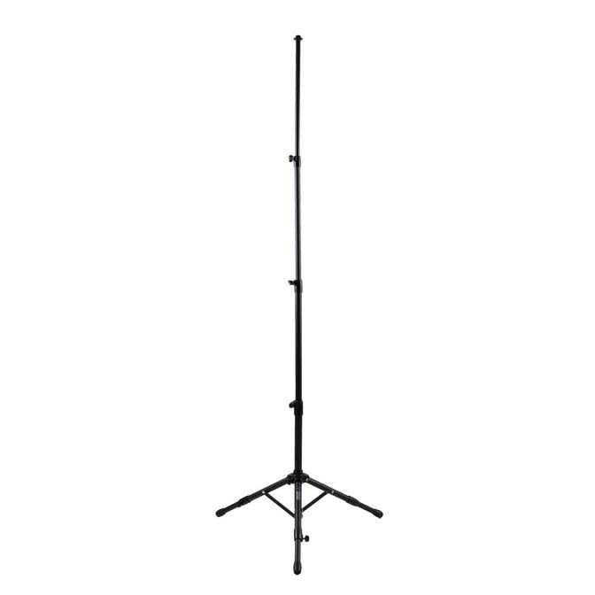 This portable stand is made for musicians that use their tablet, phones and microphones. It is only 453mm when fully collapsed and can go up to 1475mm when fully extended. It has a standard microphone thread (5/8-27") and is made of steel tubing.