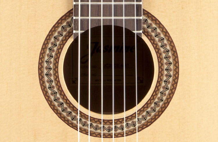 La Jasmine JC-25 est une guitare classique pleine grandeur qui offre un son de cordes de nylon chaleureux et corsé dans un emballage élégant. Idéal pour tout joueur recherchant le son chaleureux d'une guitare classique, le JC-25 dispose d'une table en épicéa sélectionné avec les critères avancé de Jasmine. Le cou mince et la longueur complète de 25 1/2 "offrent une sensation confortable et une excellente jouabilité qui vous permettront de jouer comme un maître classique en un rien de temps. D'autres caractéristiques exceptionnelles incluent une touche et un pont en palissandre, une belle rosette en mosaïque et une finition naturelle à brillant complet.