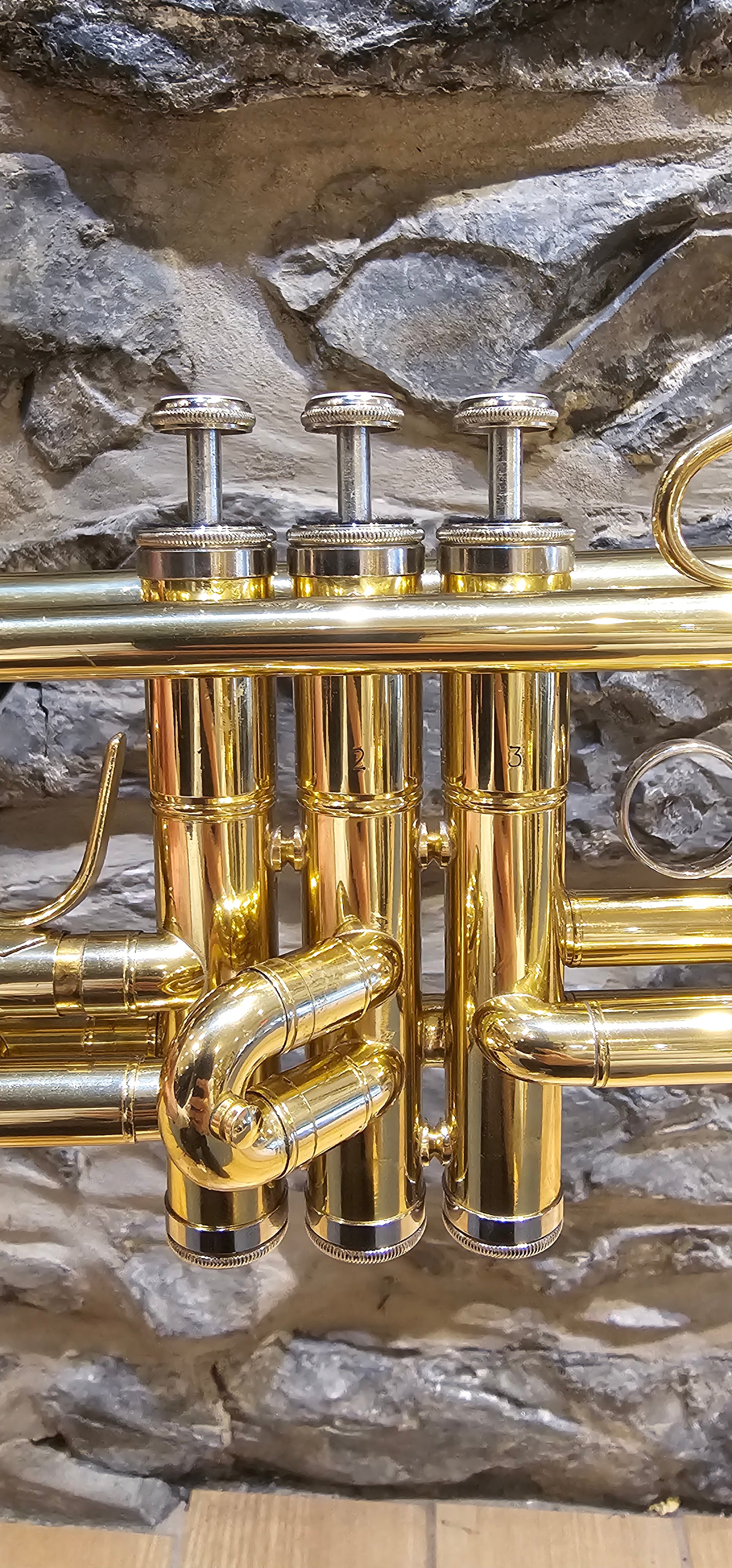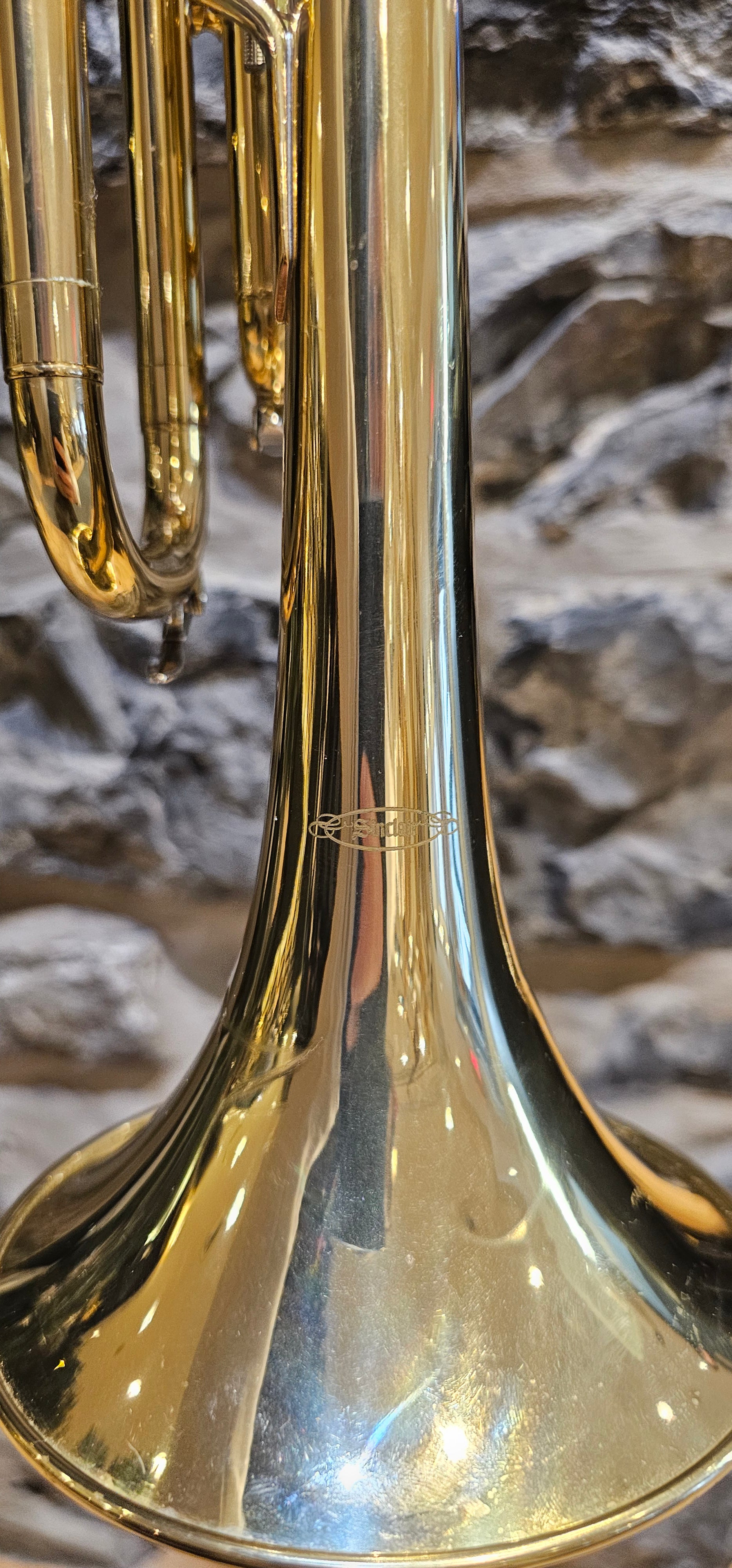 This student trumpet is a good model for beginners. It features stainless steel valves, a yellow brass bell, and a body. It comes with a hard case as well as one year guarantee on the adjustments.