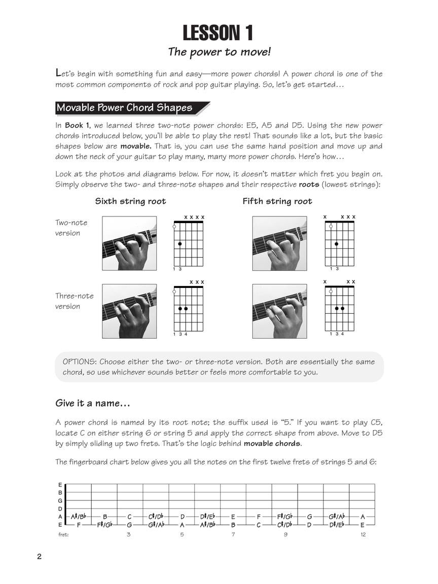 Apprenez les accords de puissance, les accords barrés, les riffs, les slides, les virages, les motifs de grattage, la cinquième position, le rock, le blues et d'autres styles.