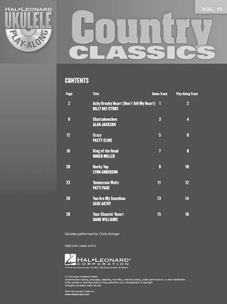 Classiques Country, Ukulélé Play-Along Vol. 15