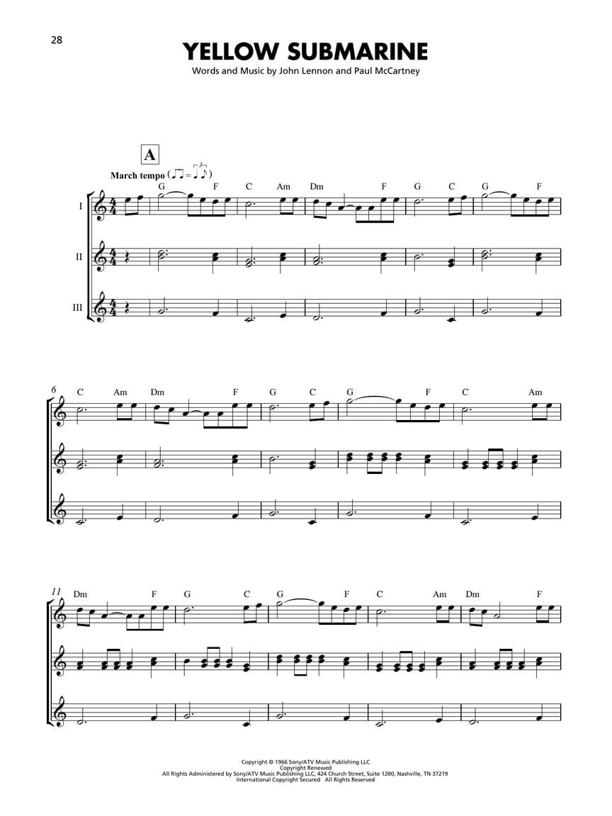 Chaque arrangement comprend la mélodie, une partie harmonique et une ligne de basse. Des symboles d'accords sont également fournis si vous souhaitez ajouter une partie rythmique. Pour les groupes de plus de trois ou quatre ukulélés, les parties peuvent être doublées.