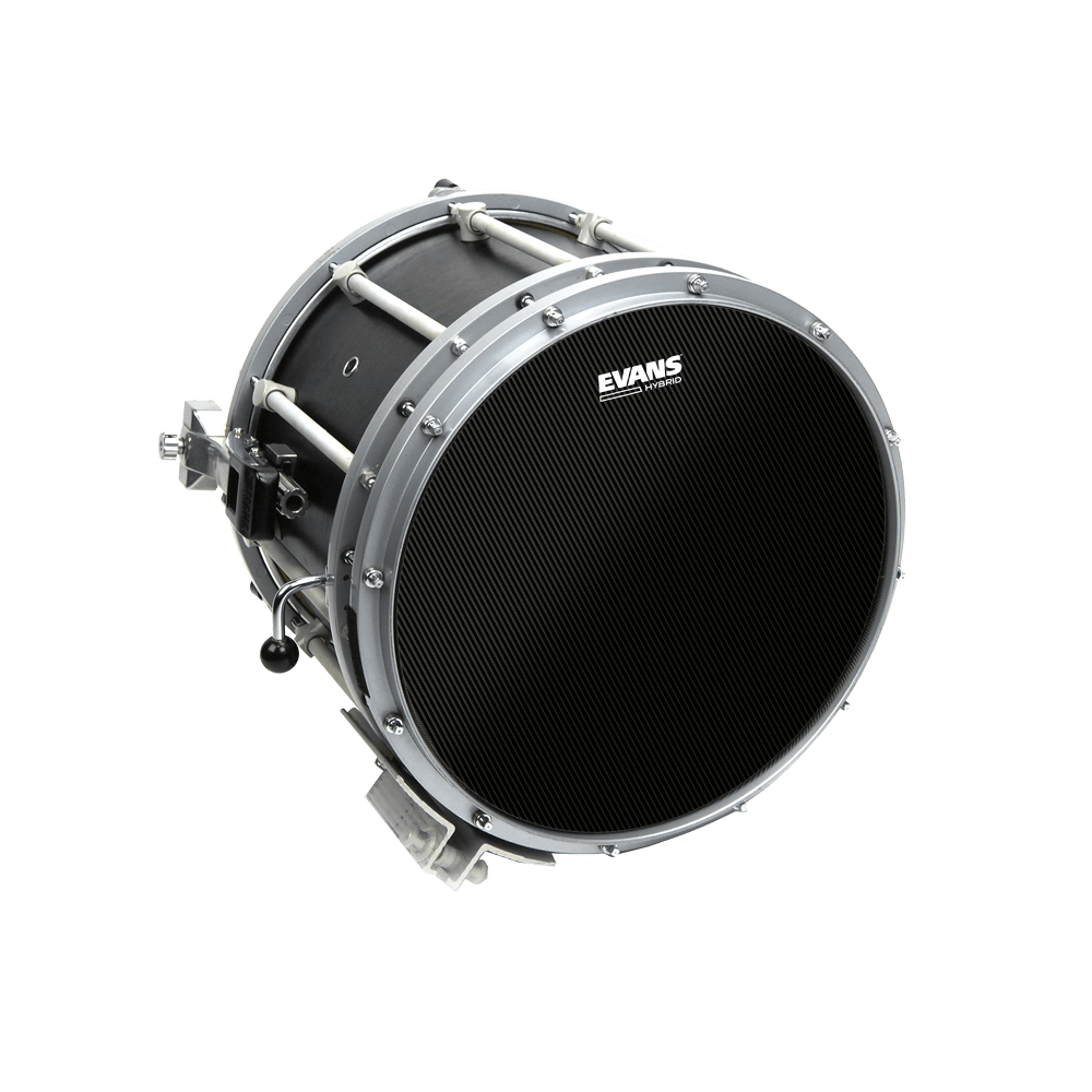 Les peaux de frappe EVANS Hybrid Black pour caisse claire de marche offrent une sensibilité accrue et une plage dynamique plus étendue, tout en optimisant la projection et la durabilité. Fabriquées à partir d'un tissage ultra-résistant de fibres à haute ténacité, ces peaux Hybrid Black présentent une texture unique résistante à l'usure, une durée de vie prolongée et une réponse améliorée. Résonnantes et riches, elles permettent une expression complète à tous les niveaux dynamiques.