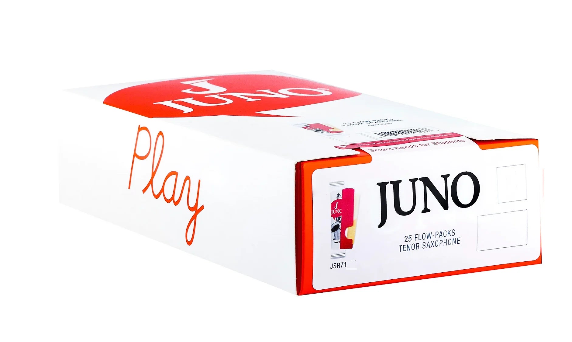 Nous avons créé l’anche JUNO, spécialement designée pour donner l’opportunité à ceux qui commencent la pratique de la clarinette ou du saxophone d’avoir déjà un beau son. L’anche JUNO de Vandoren est fabriquée en France, avec le même roseau et la même passion que tous les autre modèles d’anches de Vandoren, respectant les mêmes standards de qualité.