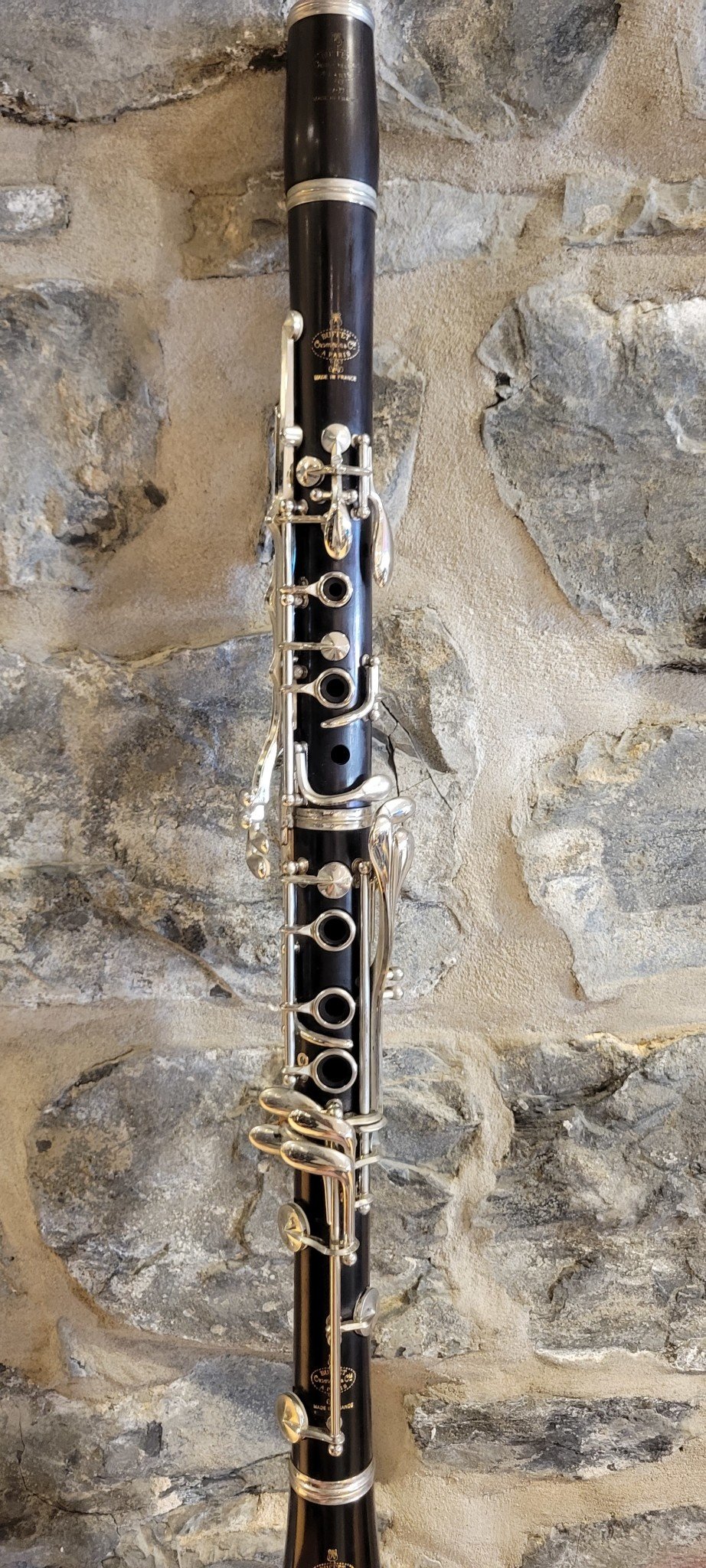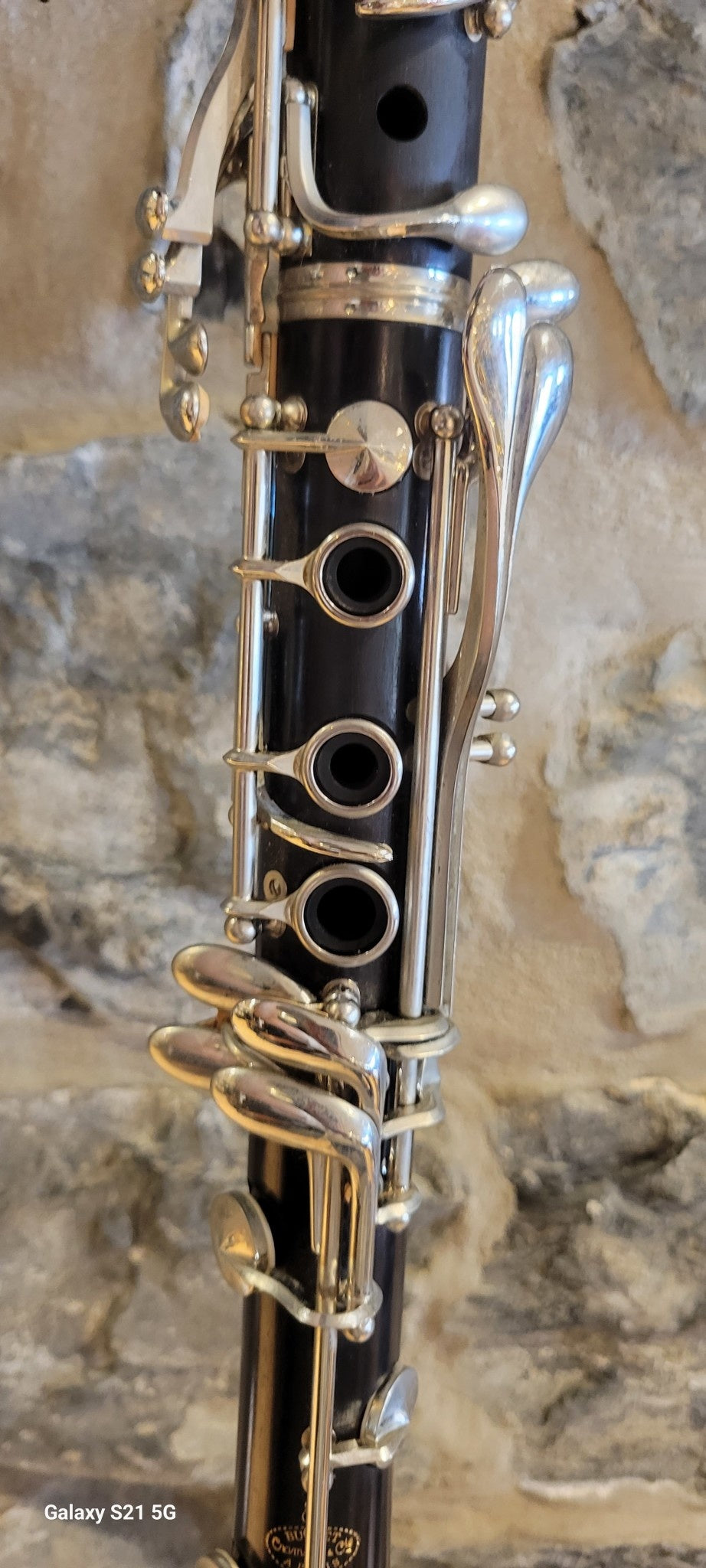 Cette clarinette professionnelle en La l'un des modèles les plus populaires sur le marché. Celle-ci a les clés nickel, un corps en grenadille et des tampons en baudruche. Celle-ci est livrée avec un étui double en cuir.