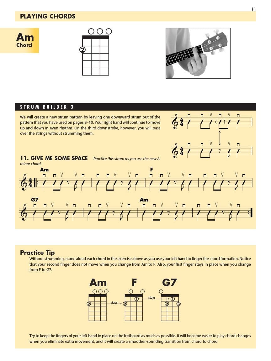 De plus, cela vous donnera une excellente occasion de partager la joie de faire de la musique avec d'autres personnes. Ce livre vous aidera à acquérir les compétences de base et les connaissances musicales dont vous avez besoin pour commencer. Cette méthode soigneusement conçue met l'accent sur les compétences de grattage d'accords; enseigner aux étudiants COMMENT pratiquer; noter des exercices de lecture; des « défis d'accords » pour apprendre à comprendre les progressions d'accords ; lecture d'onglets ; et plus. Il comprend également près de 30 chansons familières que les élèves peuvent jouer tout en apprenant :