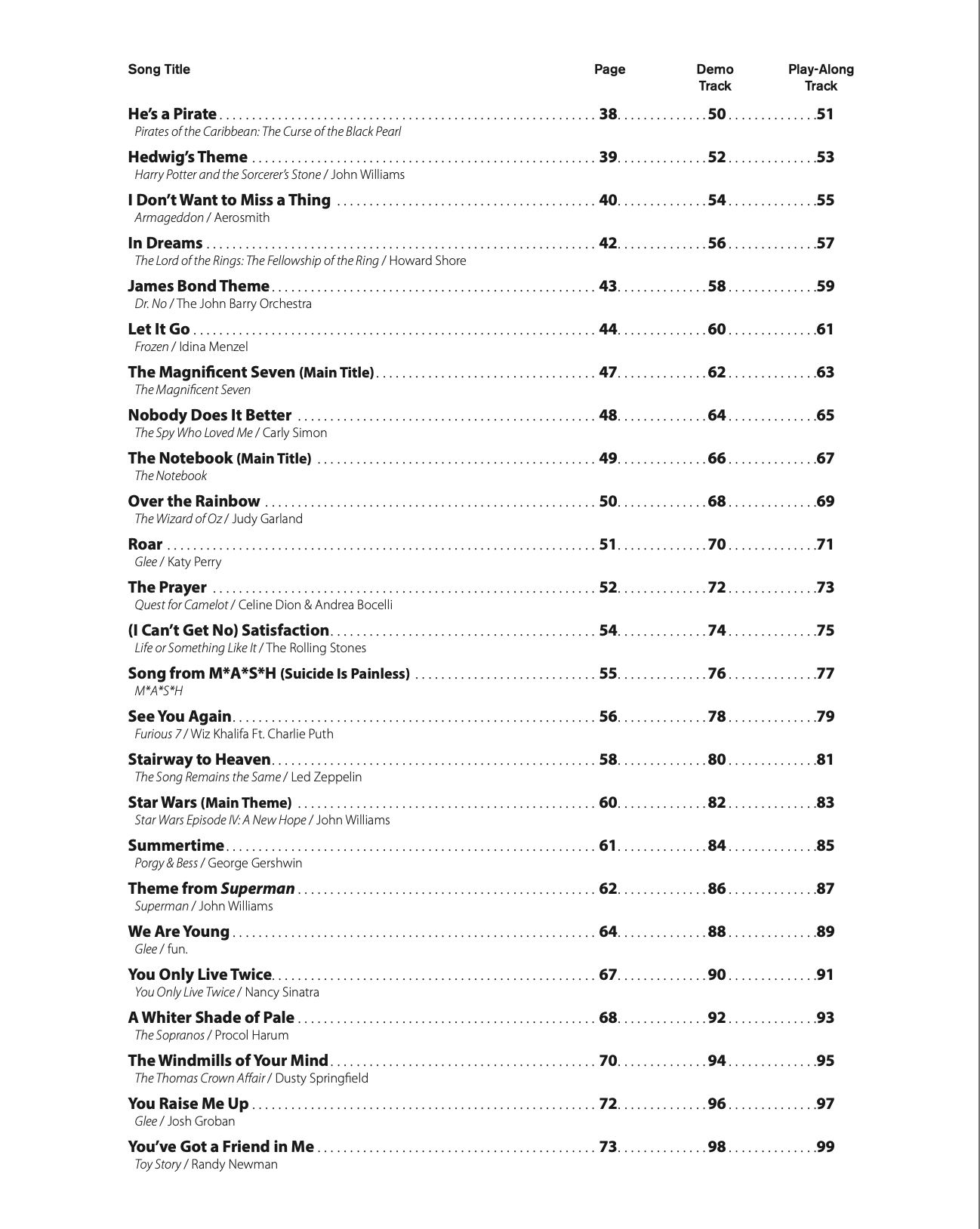 Ce livre contient des arrangements soigneusement édités et convient aux étudiants de niveau 2-3. Comprend une piste de démonstration entièrement orchestrée de chaque chanson, avec une performance solo instrumentale, suivie d'une piste d'accompagnement.