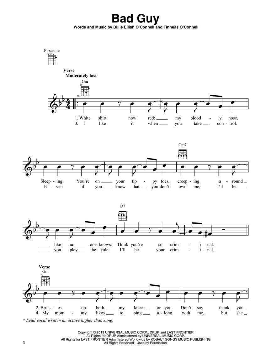 Grattez vos chansons préférées de 2019 sur votre ukulélé avec ces arrangements contenant la mélodie, les paroles et les diagrammes d'accords pour l'accordage Sol-Do-Ré-La (G-C-E-A) standard.
