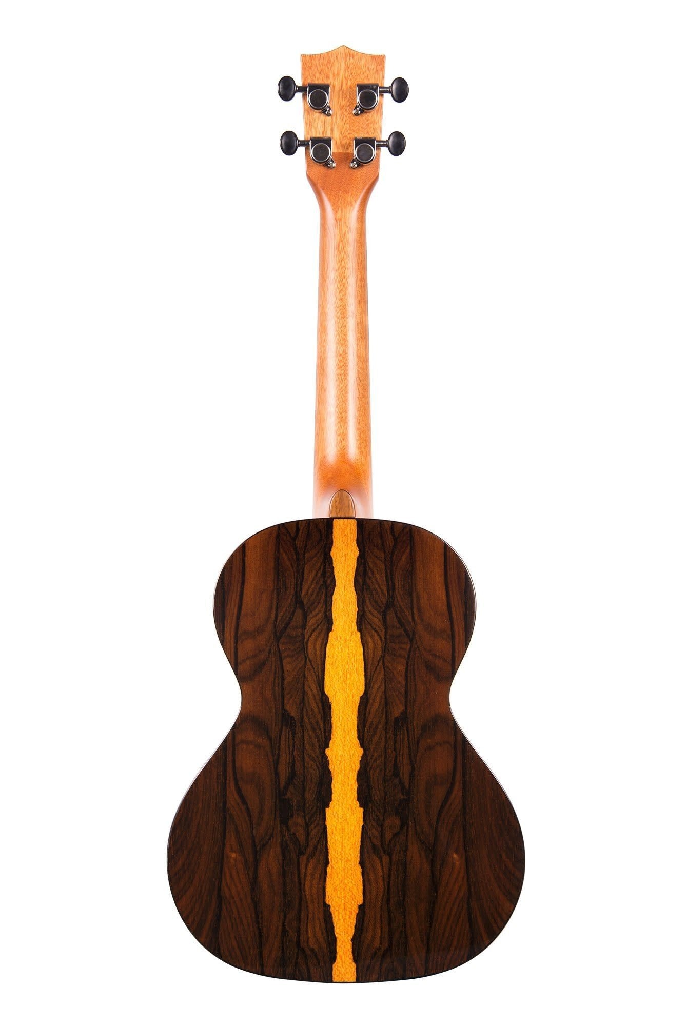 The Ziricote line features a rich, dark, chocolate brown wood accentuated by a honey blonde Sapwood in the middle and along the sides, finished in a high-gloss to make the details pop.